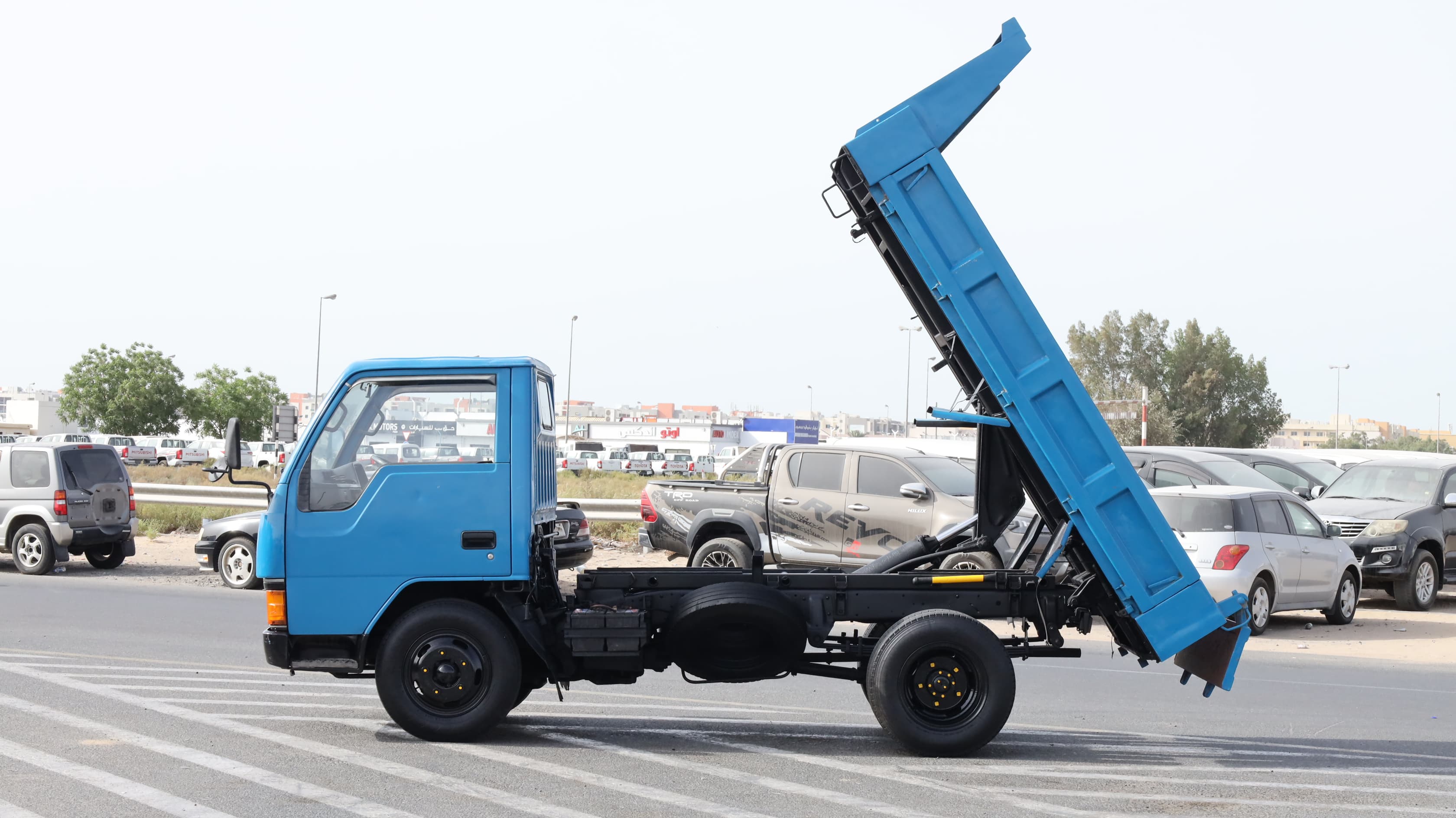 The Mitsubishi Canter Tipper Truck is a compact yet powerful light-duty vehicle known for its high payload capacity and tipping function. Engineered for efficiency and reliability, this model is ideal for construction sites, landscaping, and material transport. The vibrant blue finish enhances visibility, and the minimal cab design allows for excellent maneuverability in tight areas.
