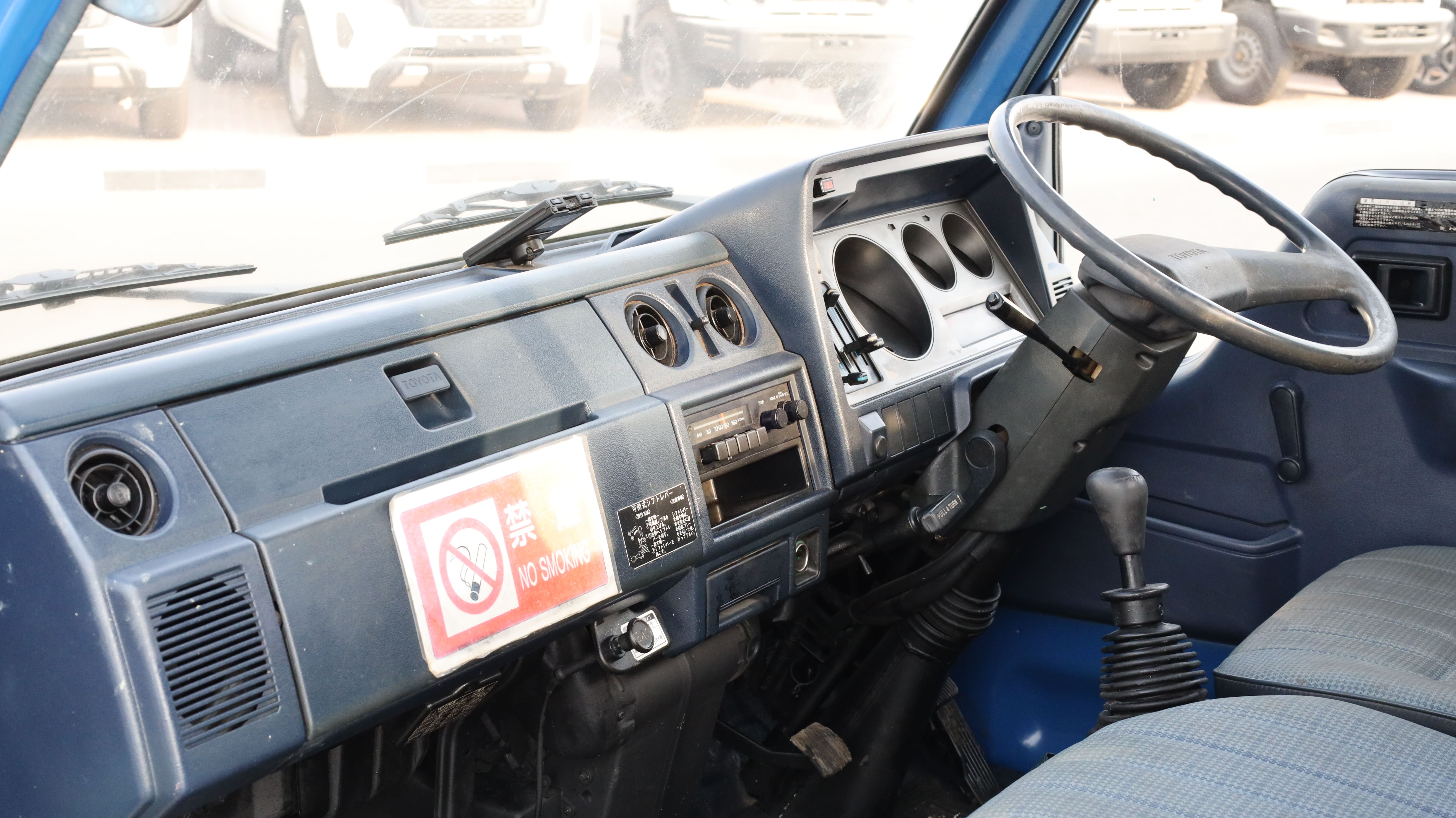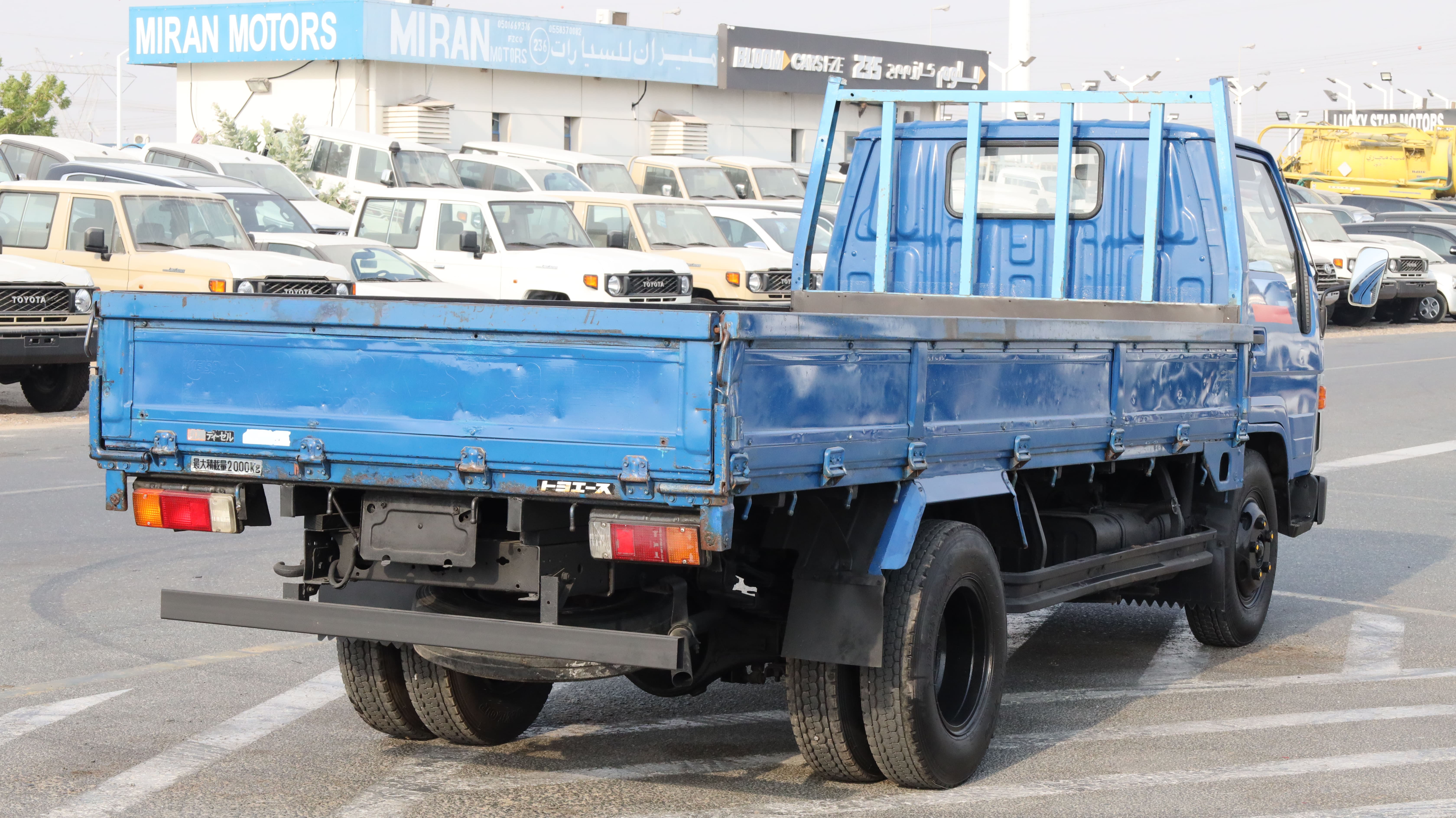 The Toyota Toyoace is a reliable and rugged flatbed utility truck, ideal for commercial transport and site logistics. Its compact size, powerful diesel engine, and durable construction make it a favorite for business owners needing efficient cargo solutions. This model stands out with its bold blue exterior and red-accented front, embodying a classic workhorse style.
